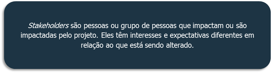 Para iniciarmos vamos a definição do tema “Stakeholders” na metodologia: