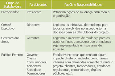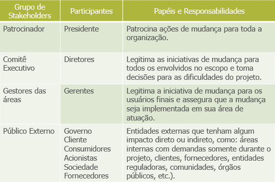 Para complementar a análise dos stakeholders indicamos entrevistar os membros ou amostras dos grupos para identificar e inferir o nível de apoio à mudança. Além disso, levantar as expectativas e visão desses indivíduos sobre a mudança.