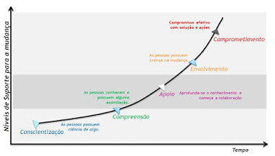 Ao buscarmos o engajamento dos envolvidos, precisamos entender que cada grupo identificado requer um nível de suporte de comunicação e mobilização, conforme gráfico abaixo: