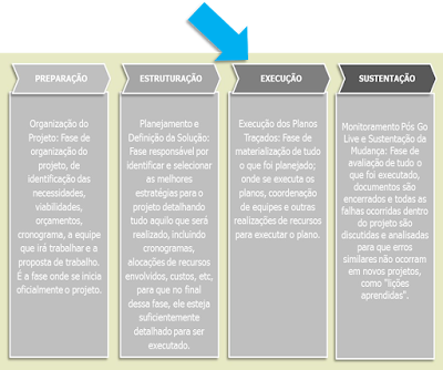 Nessa fase há muitas atividades como por exemplo, colocar em prática o plano de comunicação e mobilização que planejamos, além, claro, do monitoramento das ações tratativas dos impactos organizacionais (Plano de Transição dos Impactos).