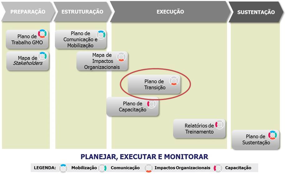 O Plano de Transição Organizacional será o documento de acompanhamento das ações ao longo da Fase de Execução.
